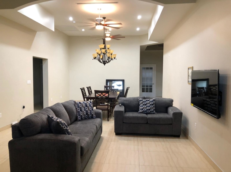 can be converted to a bedroom. New Sofa set and 55 in TV.